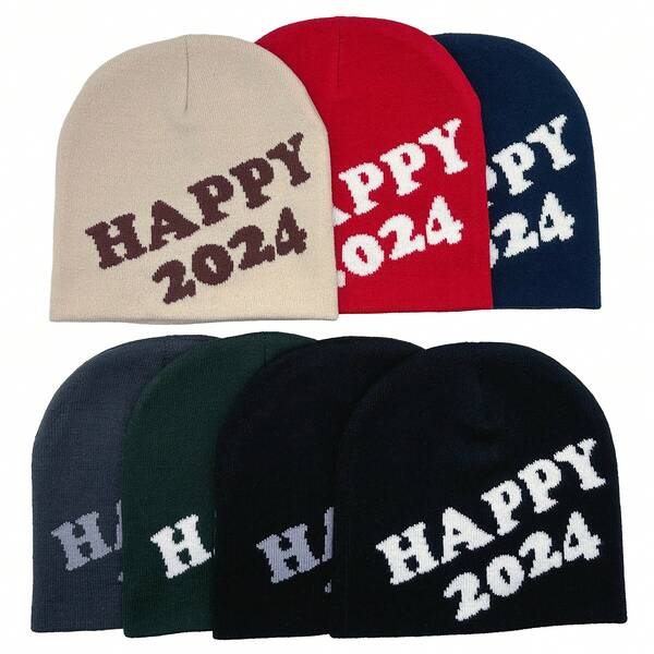 1pc 2024 Unisex Multicolor Y2k Knitted Patterned Beanie Hat, Warm Hip-Hop Street Style Outdoor Sports Cap For Daily Wear