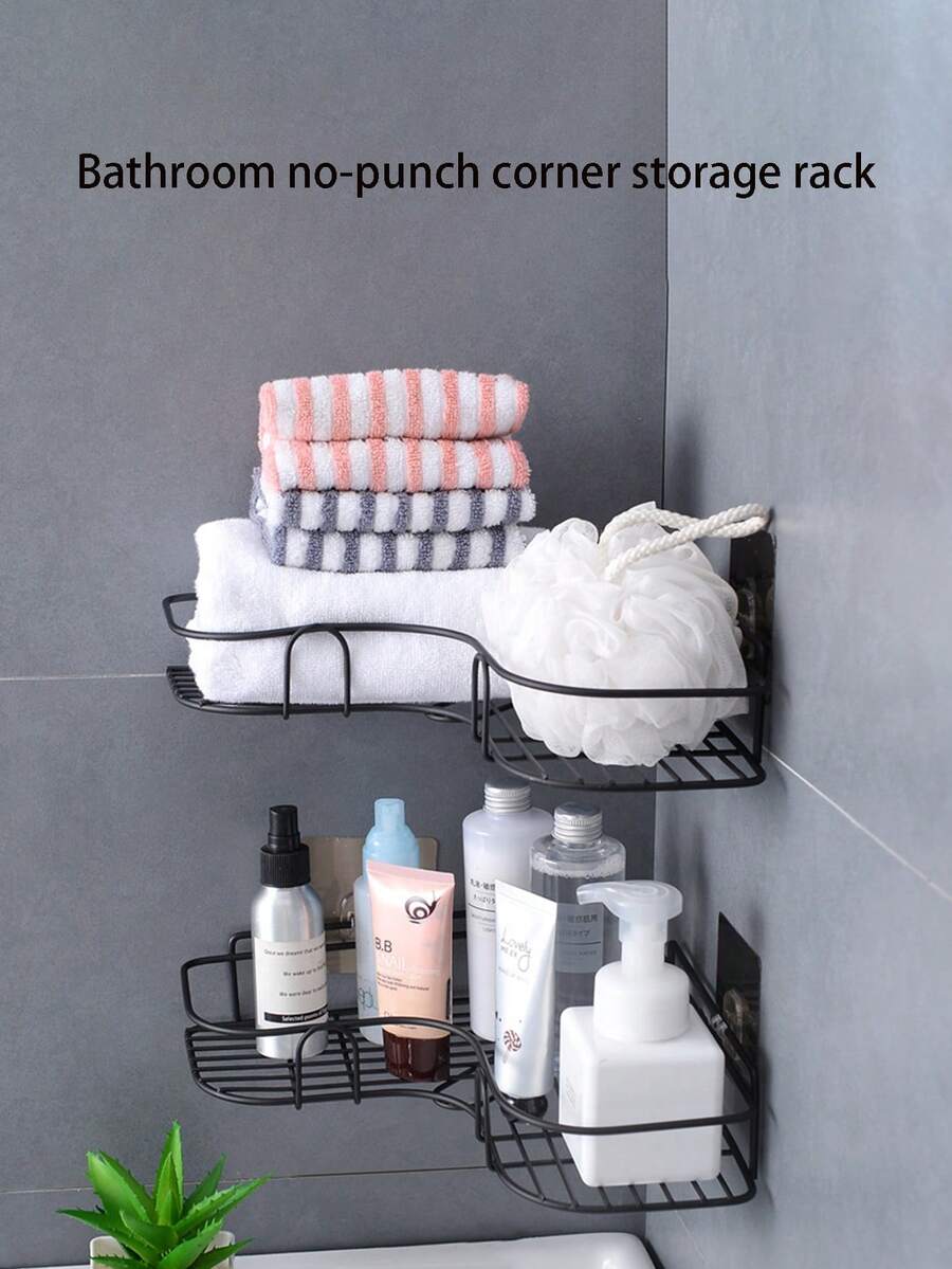 1pc 26x26cm Metal Corner Shelf, Triangle Hollow Out Wall-mounted Storage Rack, No Drilling Required. Suitable For Bathroom, Kitchen And Toilet