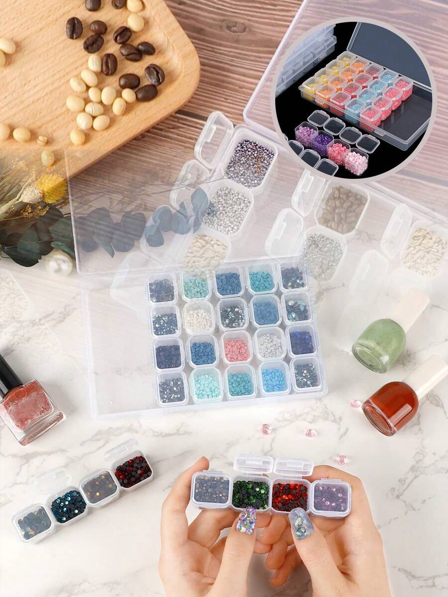 1pc 28-Grid Plastic Nail Art Storage Box,Rhinestone Organizer, Transparent Jewelry Holder Case For Storage