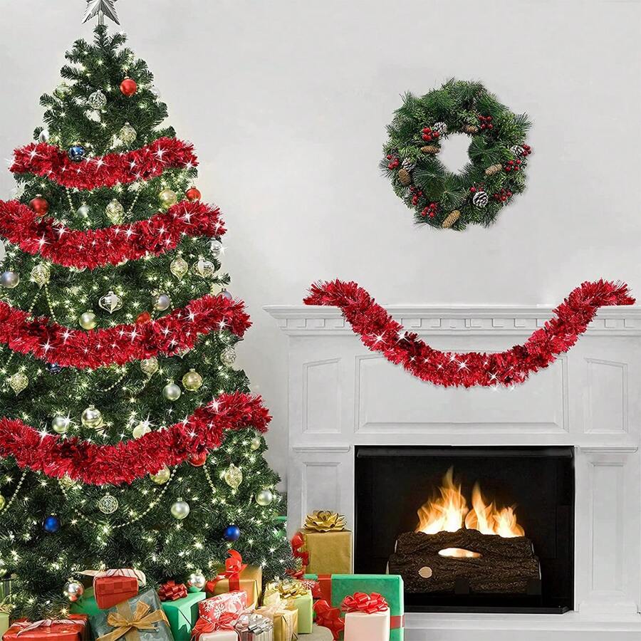 1pc-2m Red Tinsel Garlands Christmas Tree Decorations, Thick Thin Metallic Streamers Xmas Garland Holiday Christmas Decorations Home Indoor Outdoor Party Supplies