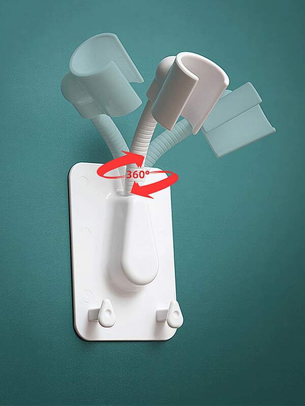 1pc 360° Shower Head Holder, Adjustable Self-Adhesive Wall Mounted Shower Head Bracket With 2 Hooks Stand, SPA Bathroom Universal