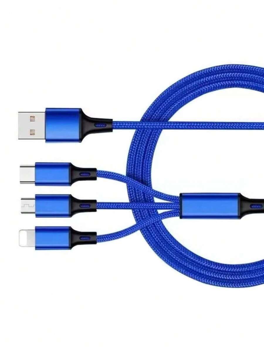 1pc 3A Braided One Drag Three For Android Type-C Charging Cable 1.2m Charging Cable 3in1 Black Silver Red Golden Blue