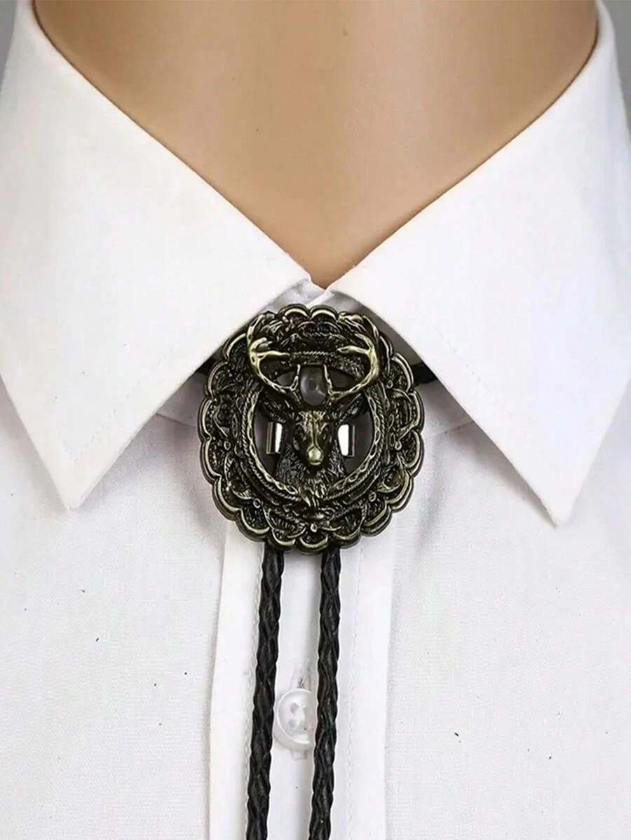 1pc 3D Bolo Tie For Man Cowboy Western Cowgirl Leather Rope Zinc Alloy Necktie