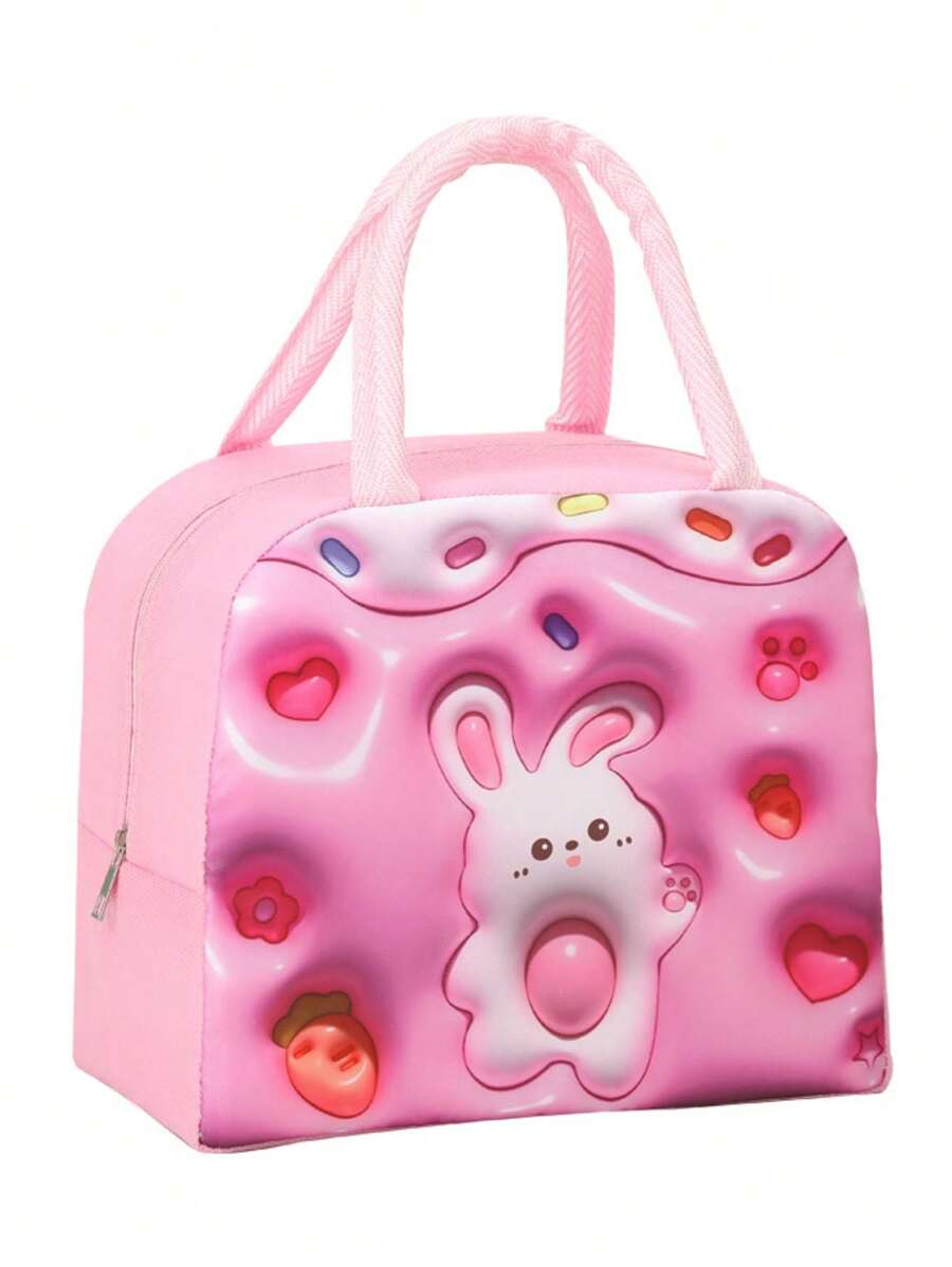 1pc 3d Cartoon Rabbit Design Thermal Lunch Bag, Portable Insulated Food Container, Ideal For Outdoor Picnic, School, Work With Aluminum Foil Layer, Pink