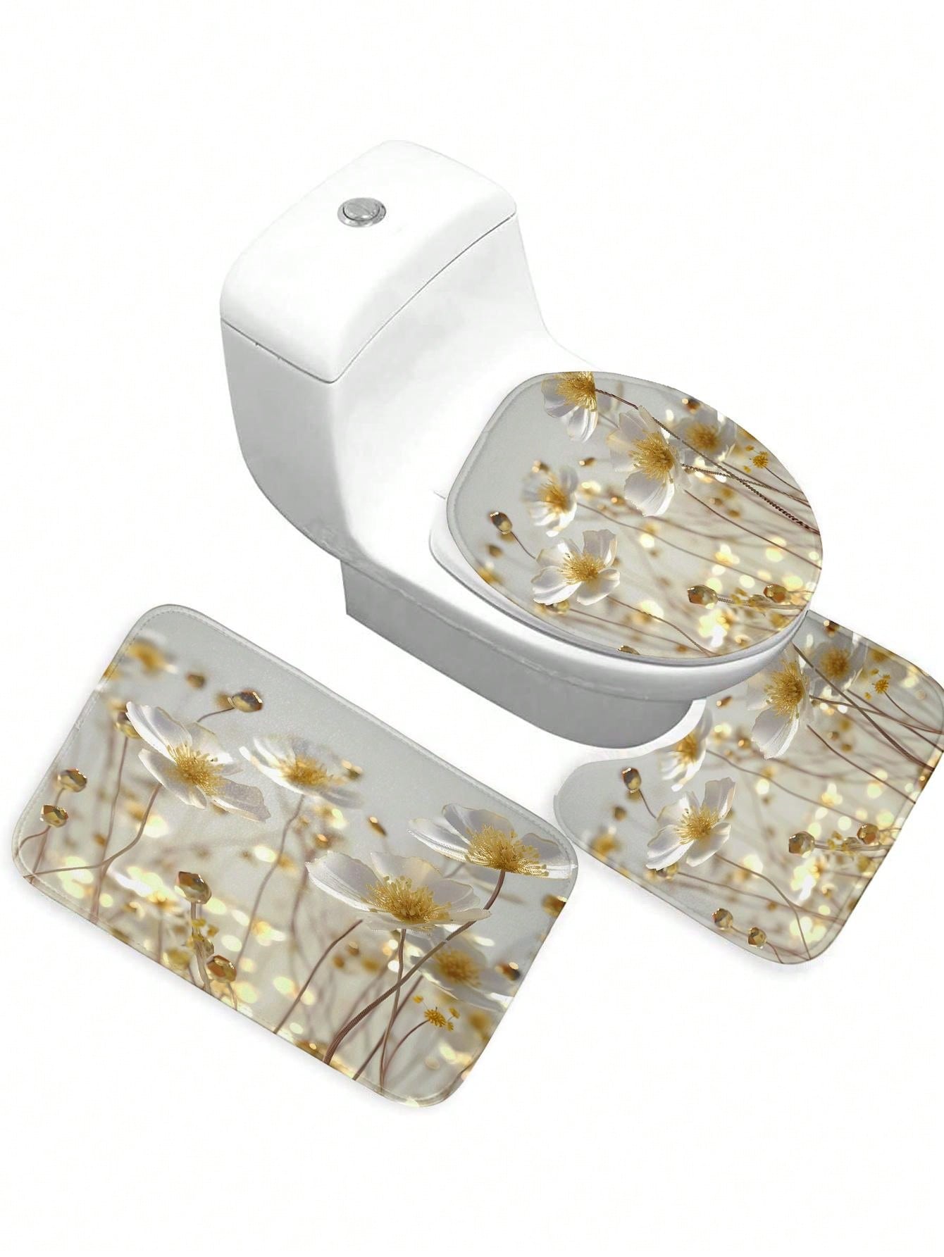 1pc 3d Flower Pattern Digital Print Shower Curtain Or Floor Mat