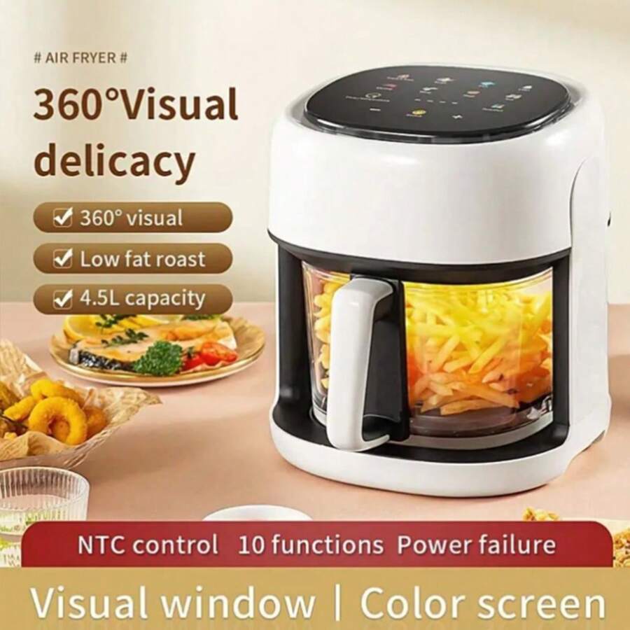 1pc 4.5l Capacity 360° Panoramic View Air Fryer With Frying Basket