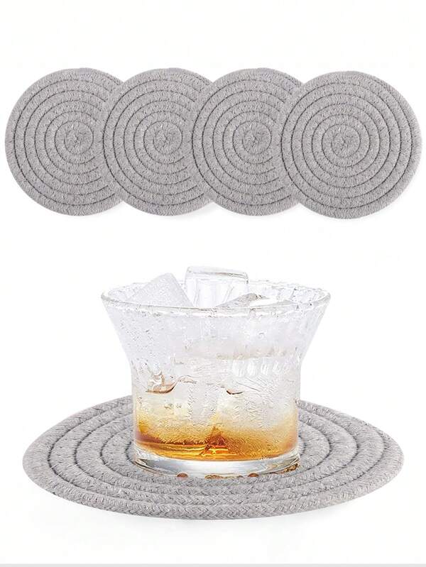 1pc 4.8inch/12cm Cup Coaster, Screw Thread Braided Round Thermal Insulation Pad, Absorbent Heat Resistant Beverage Coaster