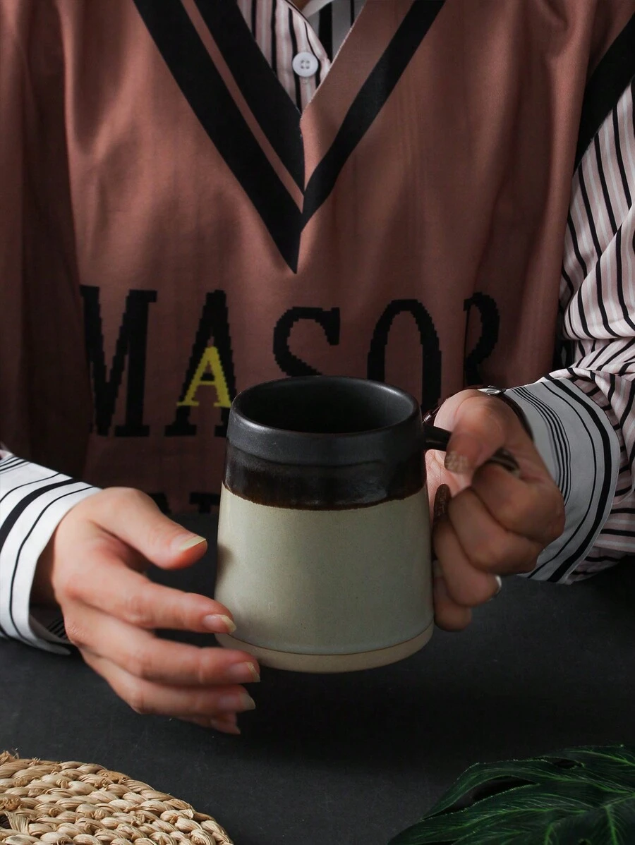 1pc 430ml Vintage & Minimalist Coarse Pottery Teacup