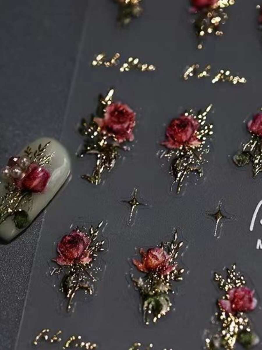 1pc 5D Stereoscopic Retro Rose Nail Art Sticker Rose Gold Foil Adhesive Decals Manicure Decoration
