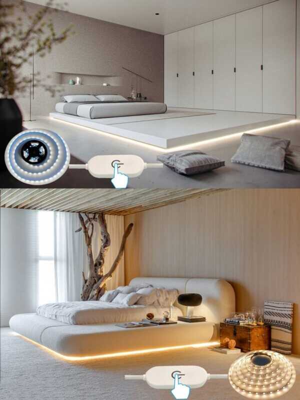 1pc 5v Low Voltage 1-5 Meters Led Strip Light With Back Adhesive And Usb Switch, Warm Light, Can Be Used As Home Bed Bottom, Mirror, Indoor Ambience Light