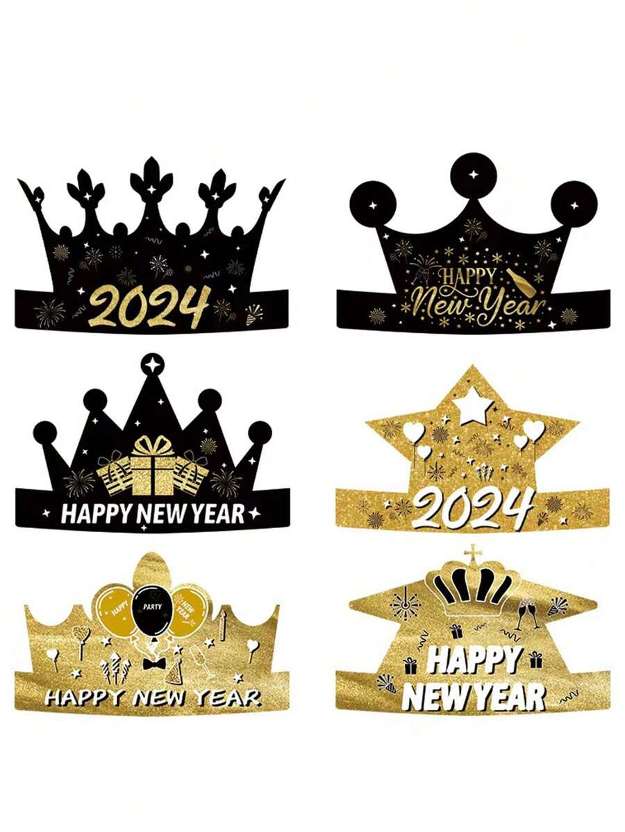 1pc 6pcs/pack New Year Festival Themed Paper Hat, Happy New Year Party Decoration Prop