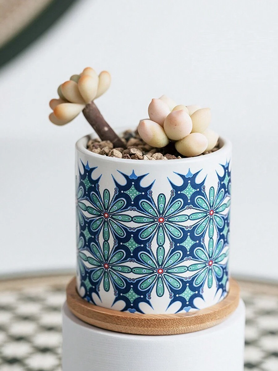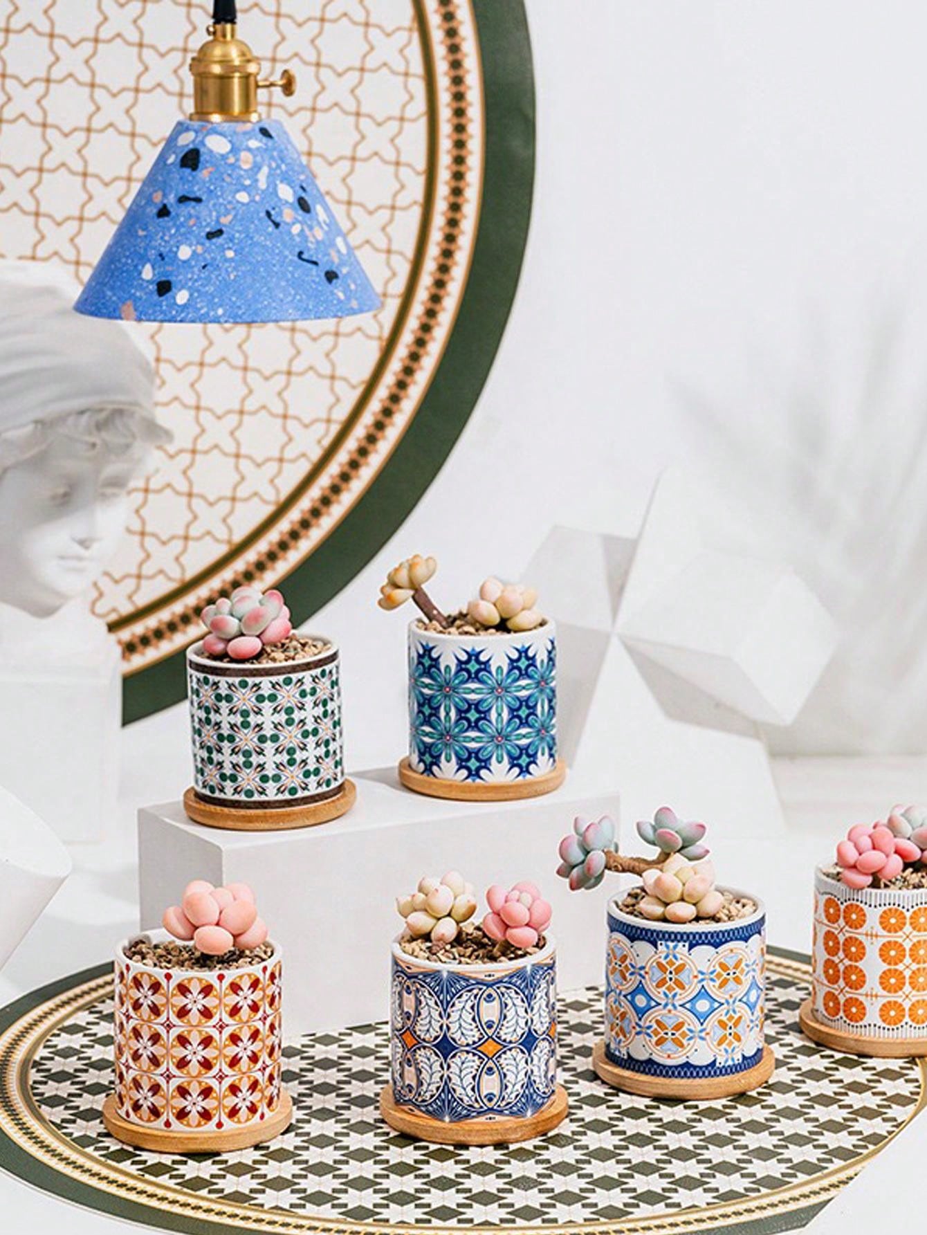 1pc 7.3cm/2.9inch Ceramic Succulent Planter, Colorful Hand-Painted Traditional Craft Mini Flower Pot, Suitable For Home Decoration & Gardening Planting