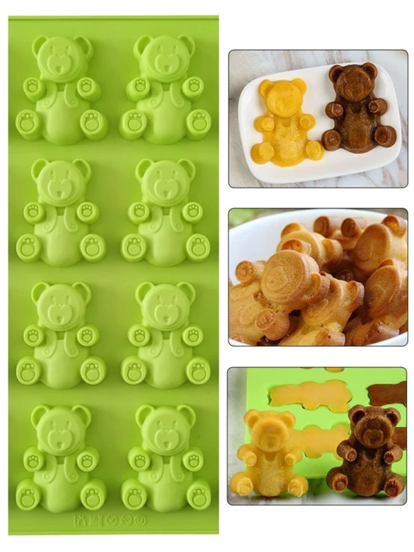 1pc 8 Cavity (s) Bear Shaped Silicone Mold (size Of Each Cavity: 5.7*4.7*1.1cm), For DIY Candy Chocolate Cookie Biscuit Cake Decoration, High & Low Temperature Resistant (-40℃~﹢230℃), Baking Mold, DIY Creative Ice Cube Tray