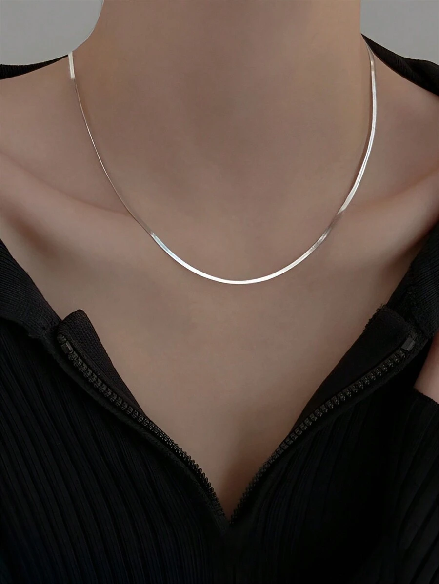 1pc 925 Silver Snake Bone Wide Chain, Shiny And Fashionable, Suitable For Dates, Holidays, Weddings, Parties, Travel, Daily Wear, Commuting, And Perfect For Girls With Elegant Temperament. Ideal For Summer Beach. Great As Gifts For Girlfriend, Mother, Teacher, Best Friends, Colleagues And Classmates