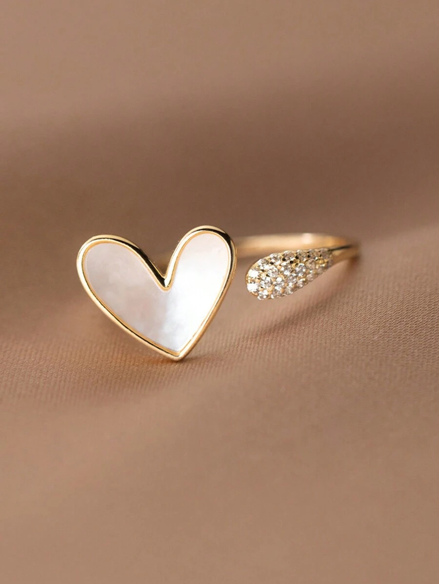 1pc 925 Sterling Silver Heart & Shell Design Ring, Ideal Gift For Valentine's Day Women