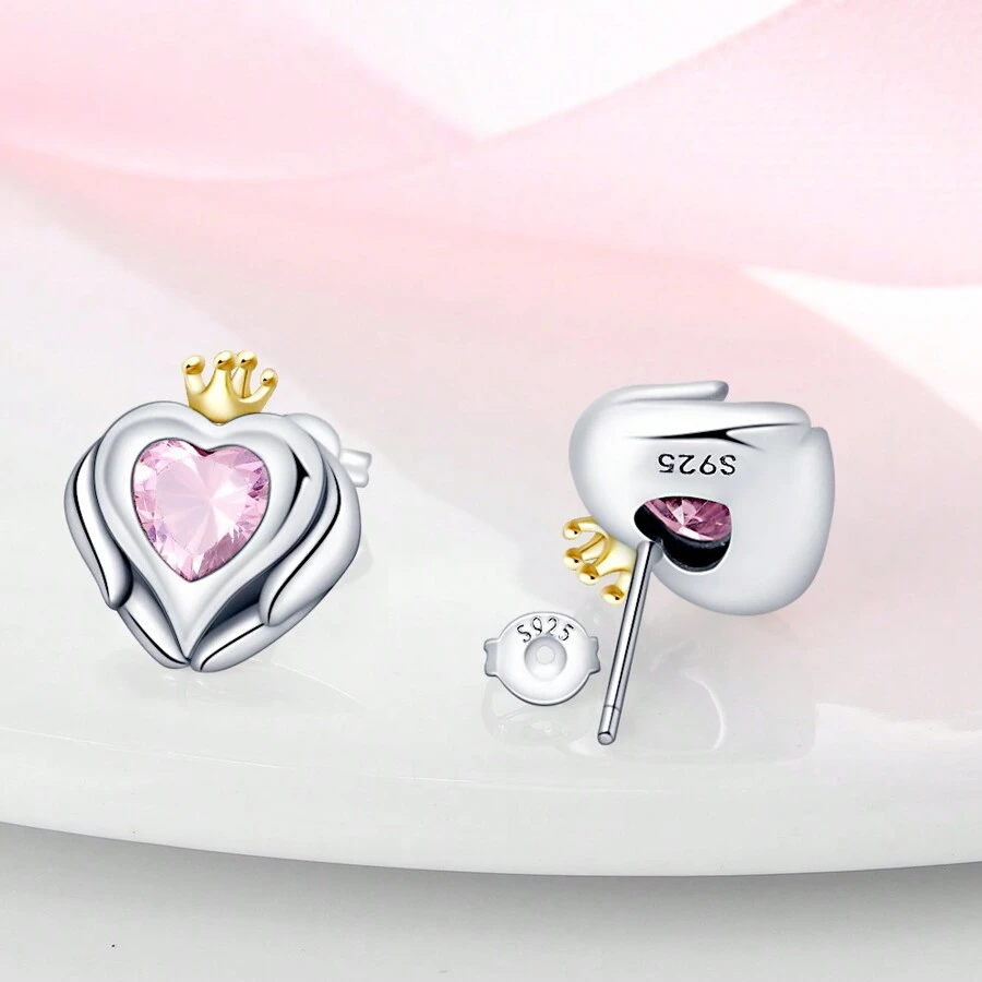 1pc 925 Sterling Silver Rhyolite & Pink Crystal Crown Heart Design Earrings For Women, Hypoallergenic, Perfect For Gifting To Friends And Loved Ones On Special Occasions Like Birthdays And Holidays