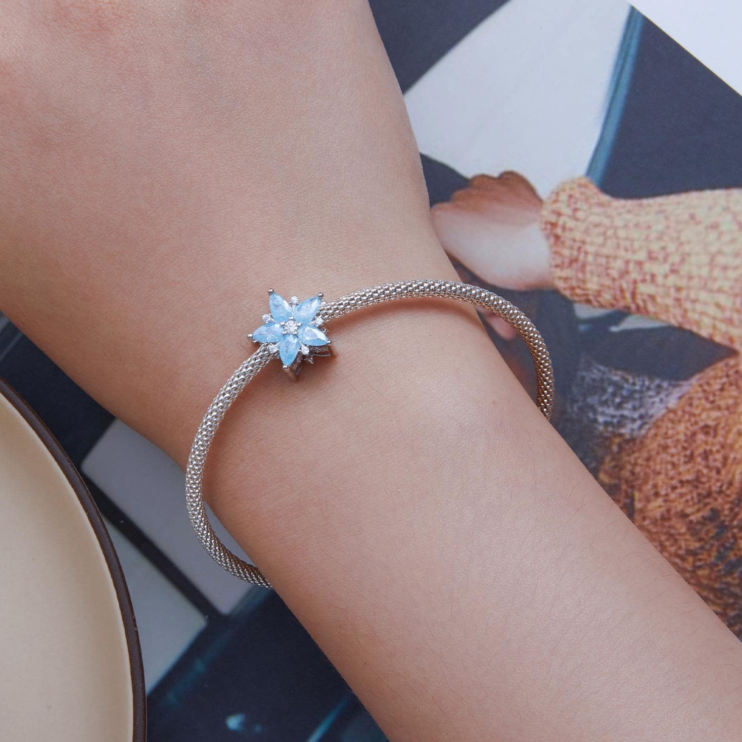 1pc 925 Sterling Silver Sky Blue Snow Flower Beads Aquamarine Cubic Zirconia Snowflake Charms For Women Bracelet Fine Jewelry