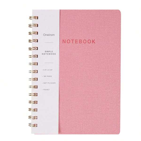 1pc A5 160-Page Pu Coil Notebook - Literary & Simple Linen Style Memo Book