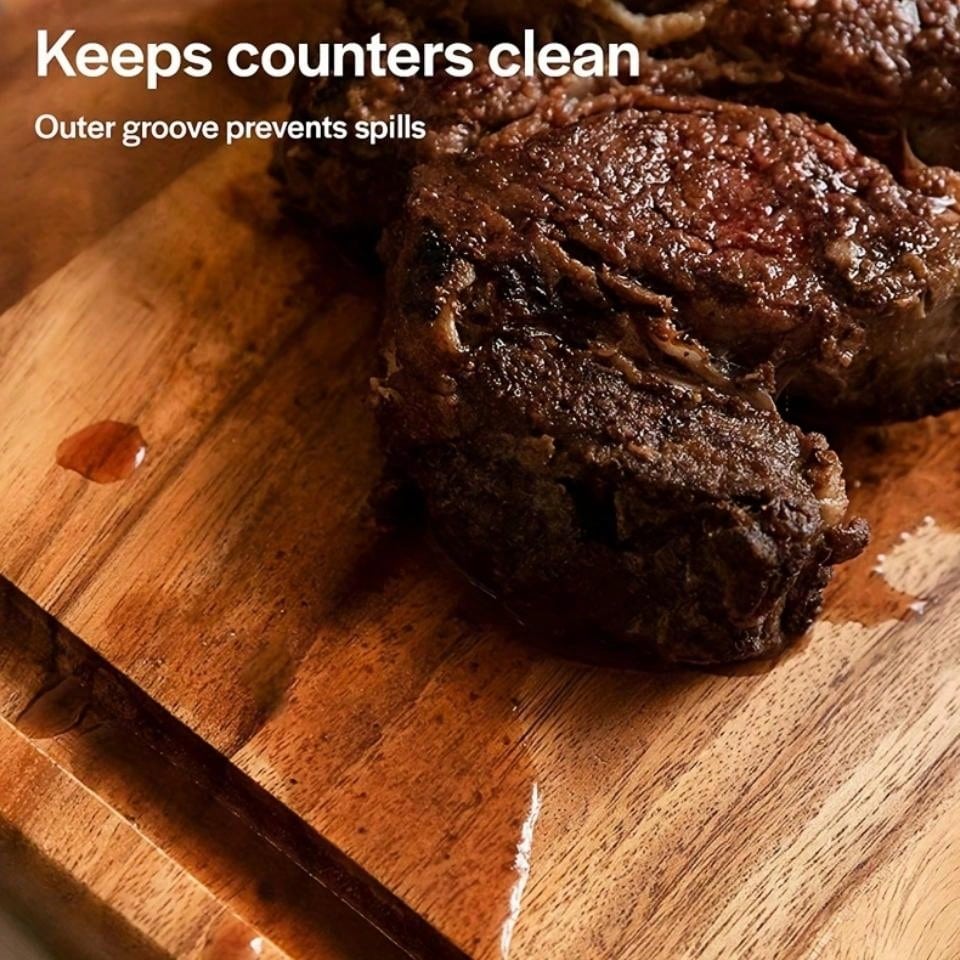 1pc Acacia Wood Chopping Board, Extra Hard & Thick Cutting Board With Juice Groove, Kitchen Utensils, Suitable For Home & Restaurant
