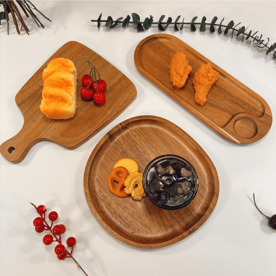1pc Acacia Wood Tray, Suitable For Home, Cafe, Restaurant, Bakery, Etc. For Serving Bread, Milk, Coffee, Snacks, Cakes & Desserts. Multipurpose Tray With Texture.