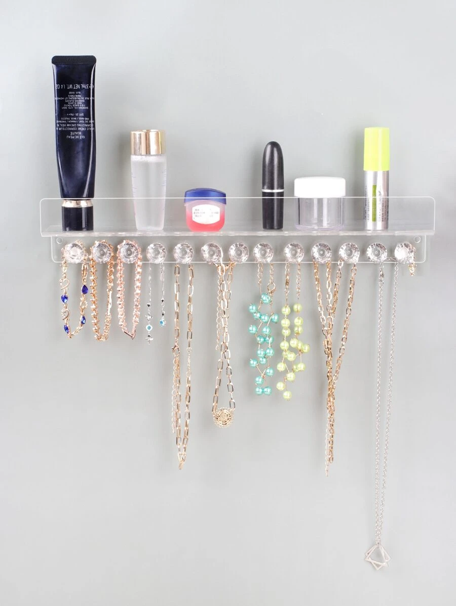 1pc Acrylic Multifunction Jewelry Storage Rack, Clear Crystal Design Hook Double Layer Organizer Holder For Cosmetic & Necklace