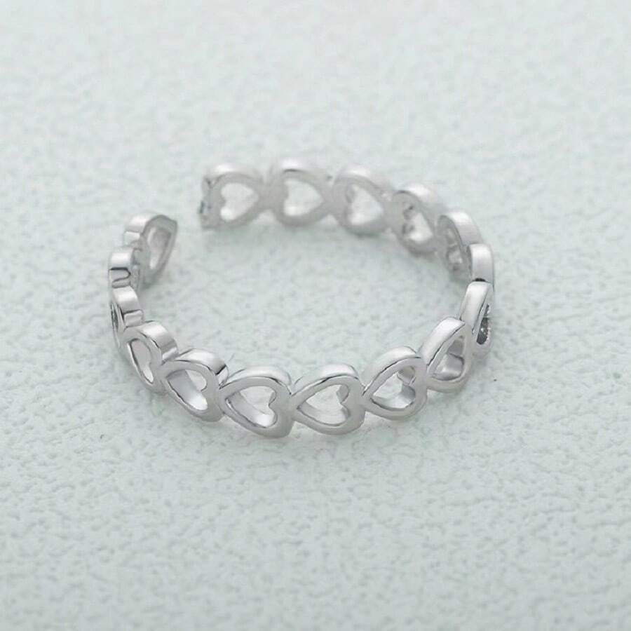 1pc Adjustable Copper Ring With Smooth Surface And Heart Shaped Design, Suitable For Women'S Daily Wear Or As A Delicate Gift