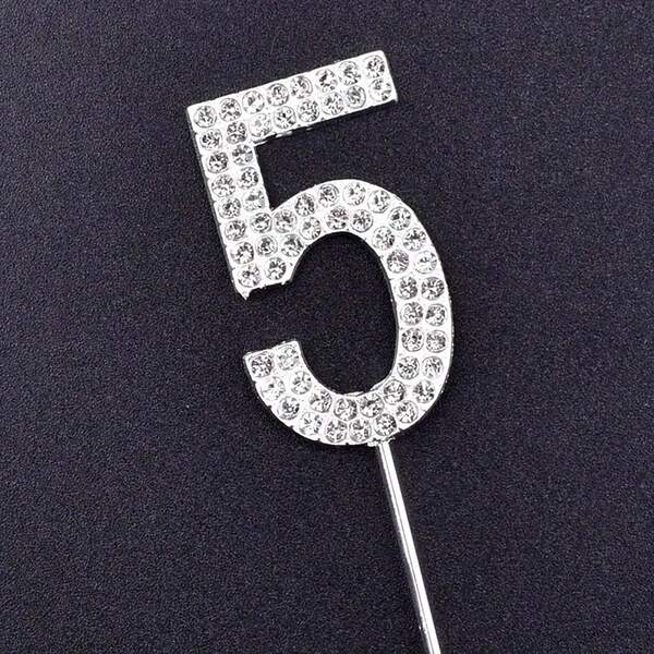 1pc Alloy Rhinestone Decorated Number Shaped Cake Topper For Birthday And Wedding Party Theme Decorations