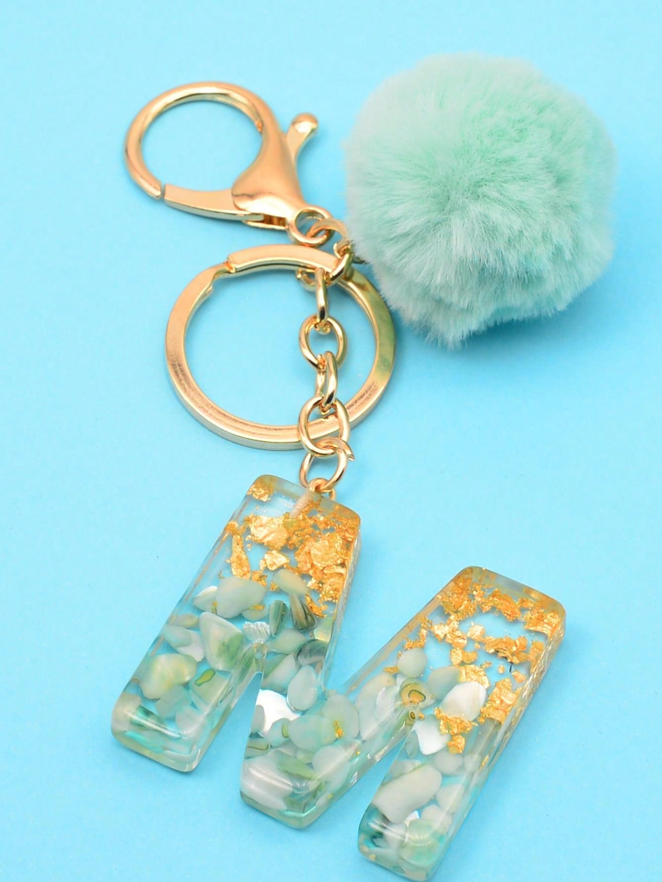1pc Alphabet Initial Keychain With Light Blue Furry Ball For Women's Bag Decor