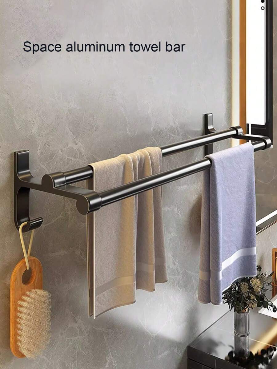 1pc Aluminum Alloy Towel Rack, Bathroom Without Punch Wall Hanging Rack, Toilet Hand Washing Room Storage Hanging Rack, Black Minimalist Style