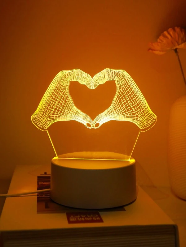 1pc Amber Remote Control Dual Hand Shaped Heart 3d Night Light & Gift Night Light