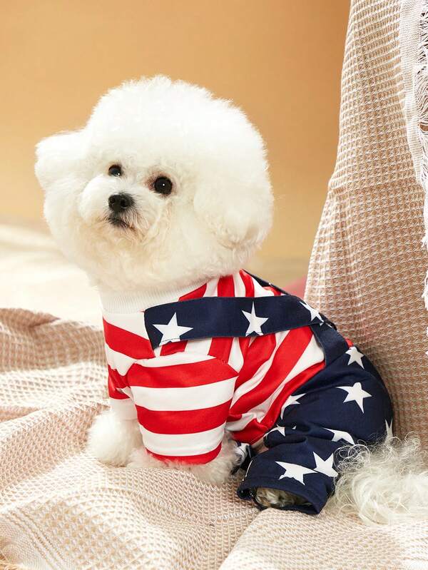 PETSIN 1pc American Independence Day Striped & Star Print Pet Sweatshirt