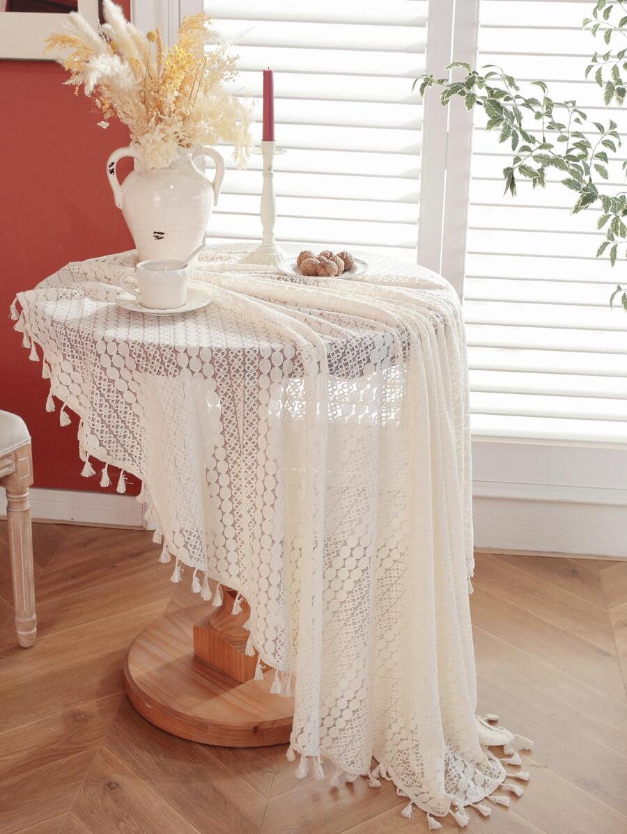 1pc Apricot Cottagecore Hollow Lace Tablecloth, Modern Dust Proof Kitchen Table Cover For Dining Table