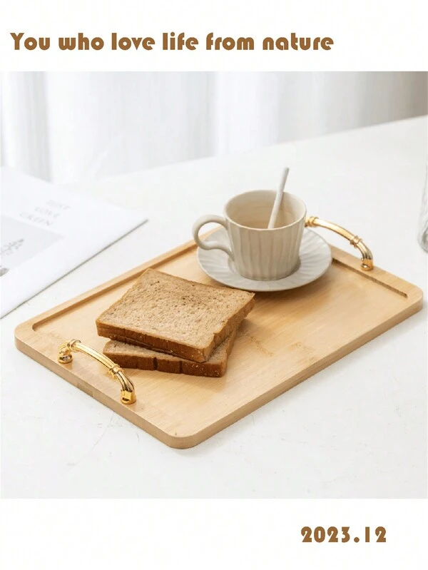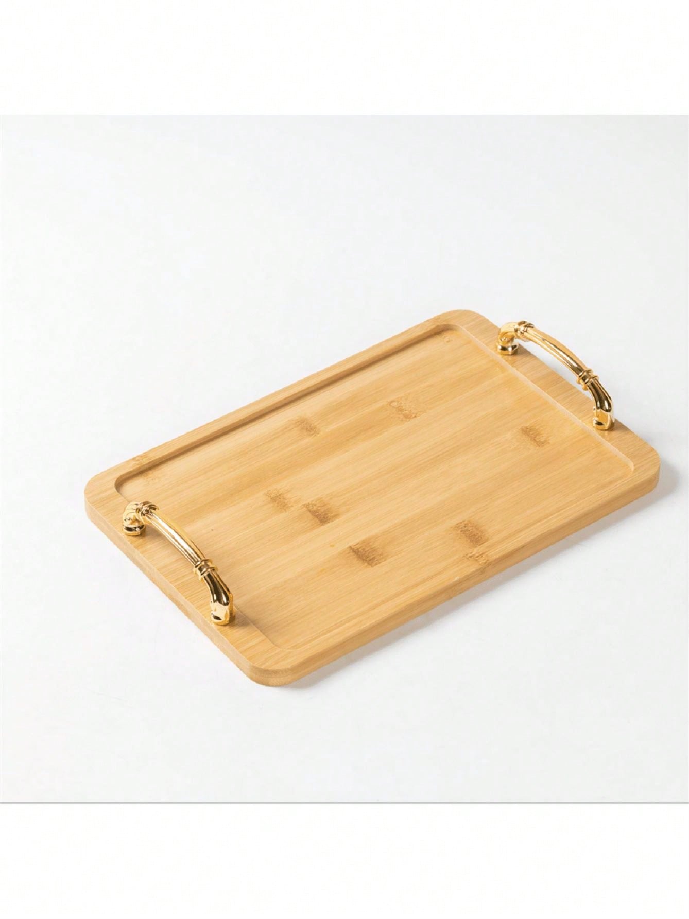 1pc Apricot Square Natural Bamboo Household Organizer Tray For Snacks, Fruits, Vegetables, Drinks