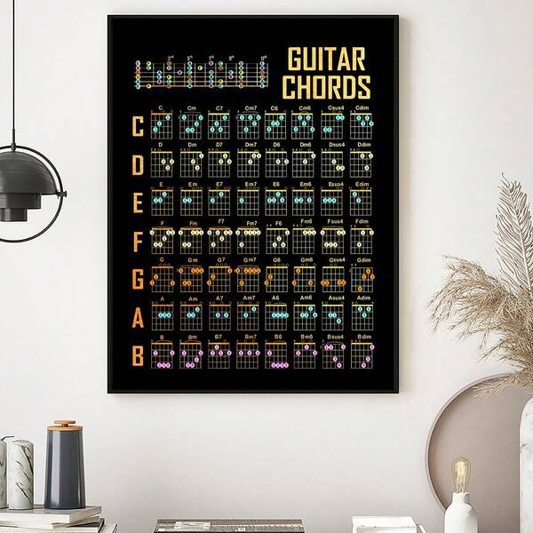 1pc Art Canvas Painting, Guitar Stave Music Chord Painting On Canvas Wall Art, Artwork Wall Painting For Bathroom Bedroom Office Living Room Home Wall Decor, No Frame
