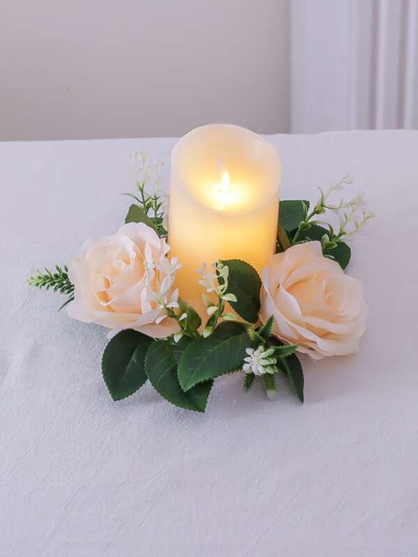 1pc Artificial Rose Wreath Candlestick Wreaths European-style Candle Ring For Wedding Table Party Home Decor
