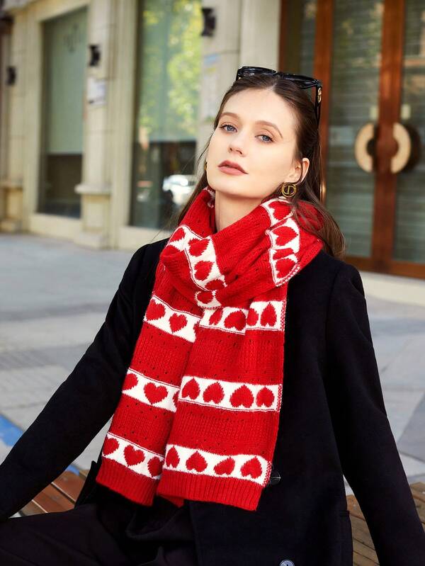 1pc Autumn/Winter Women'S Valentine'S Day Limited Edition Warm Heart Patterned Scarf