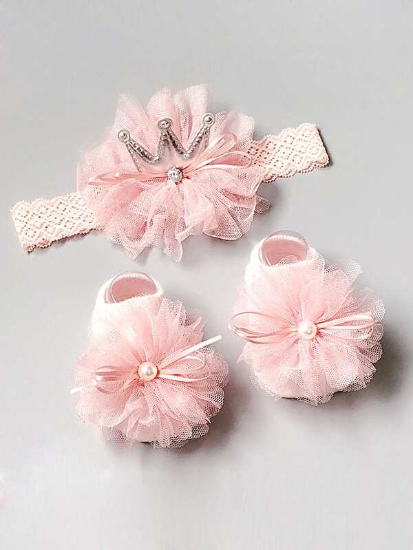 1pc Baby Crown Design Fabric Hair Band & 1pair Baby Invisible Sockss