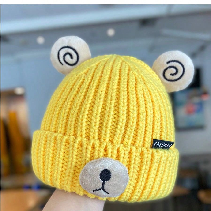 1pc Baby Hat Cute Bear Shaped Knitted Woolen Cap, Warm Winter Beanie For Infants