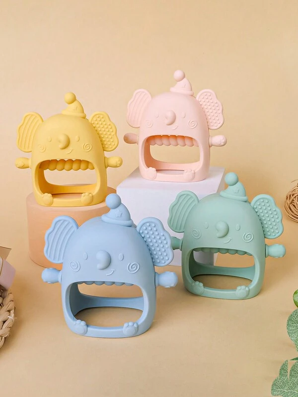 1pc Baby Silicone Teether And Grasping Toy, Soft Material With Cartoon Elephant Shape