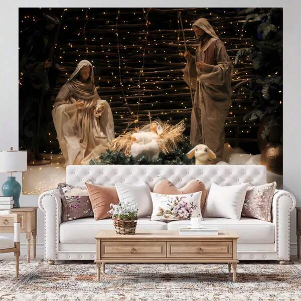 1pc Background Cloth, Decoration Of The Birth Of Jesus, Hanging Cloth, Holiday Party Decoration, Scene, Tapestry Cloth