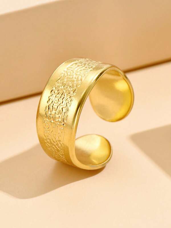 1pc Baroque Style Stainless Steel Wide Textured Open Ring For Couples