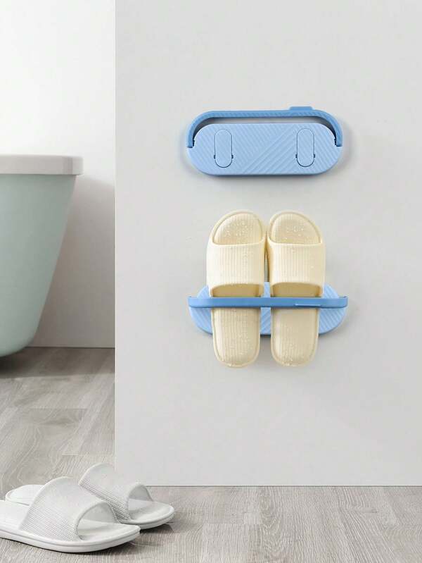 1pc Bathroom Slipper Rack Wall-Mounted Shoes Organizer Without Punching, Toilet Storage Shelf