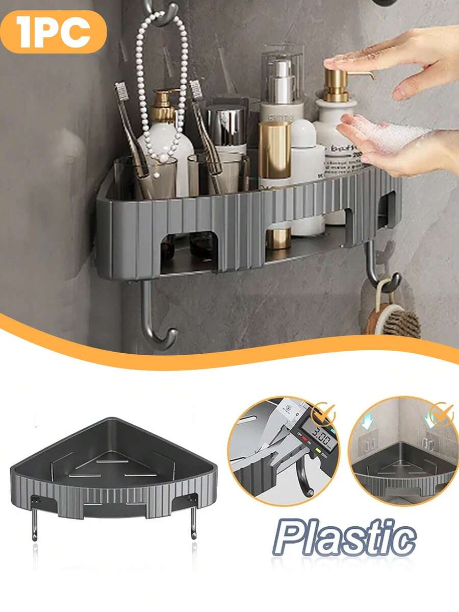 1pc Bathroom Storage Rack, Wall-Mounted Triangular Shower Organizer, Shampoo Shelf Bracket, No-Drilling Bathroom Accessory