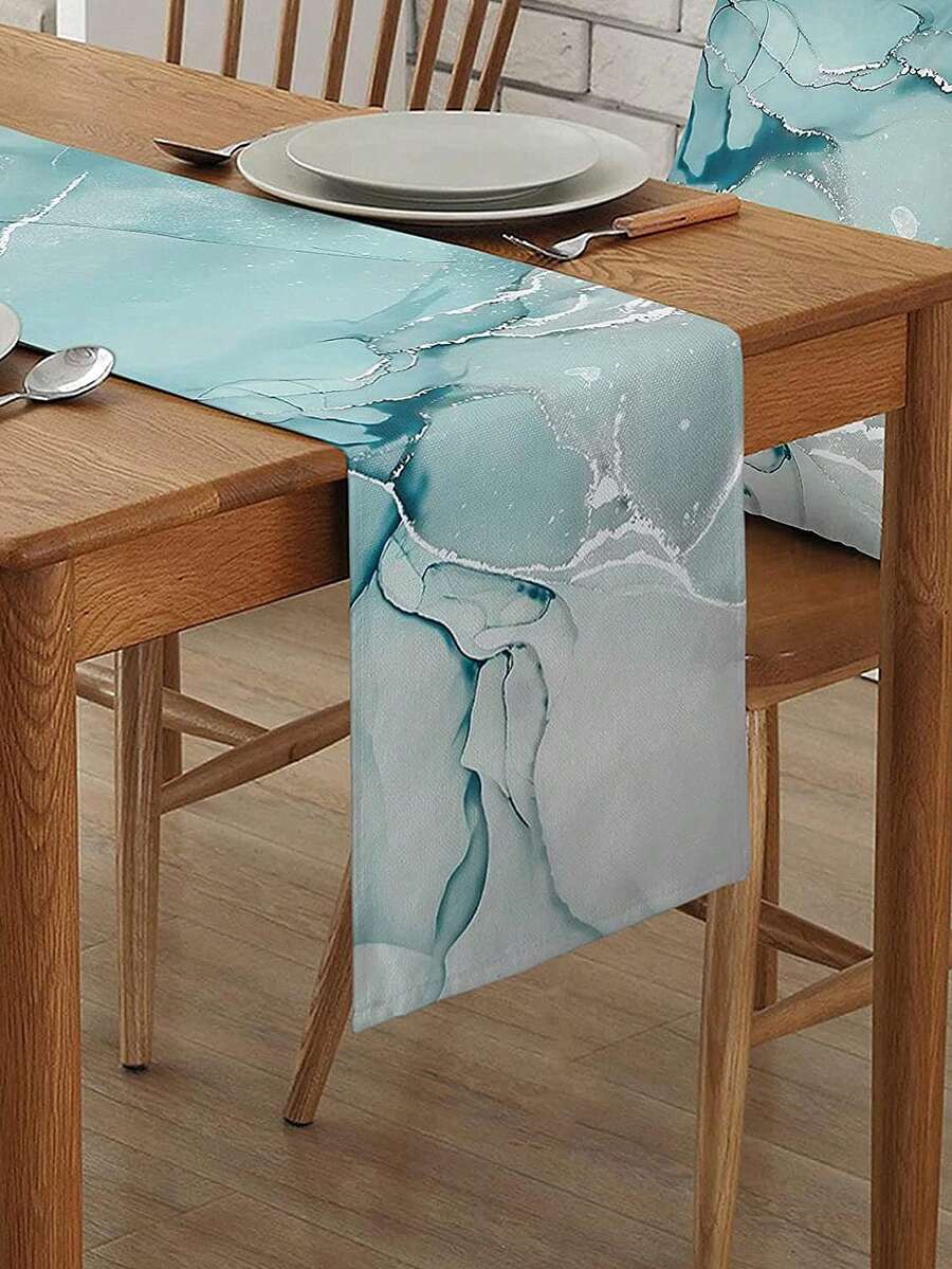 1pc Beach Style Printed Linen Table Flag For Party, Restaurant, Blue Ombre Table Cloth, Desk Flag, Cabinet Table Runner