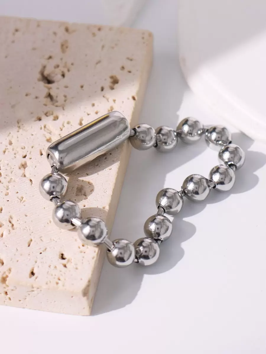 1pc Bead Decor Bracelet, Stainless Steel Jewelry