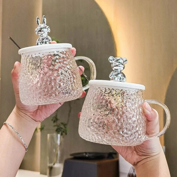 1pc Bear Pattern Glass Coffee Cup, Creative Heat Resistant Mug For Home