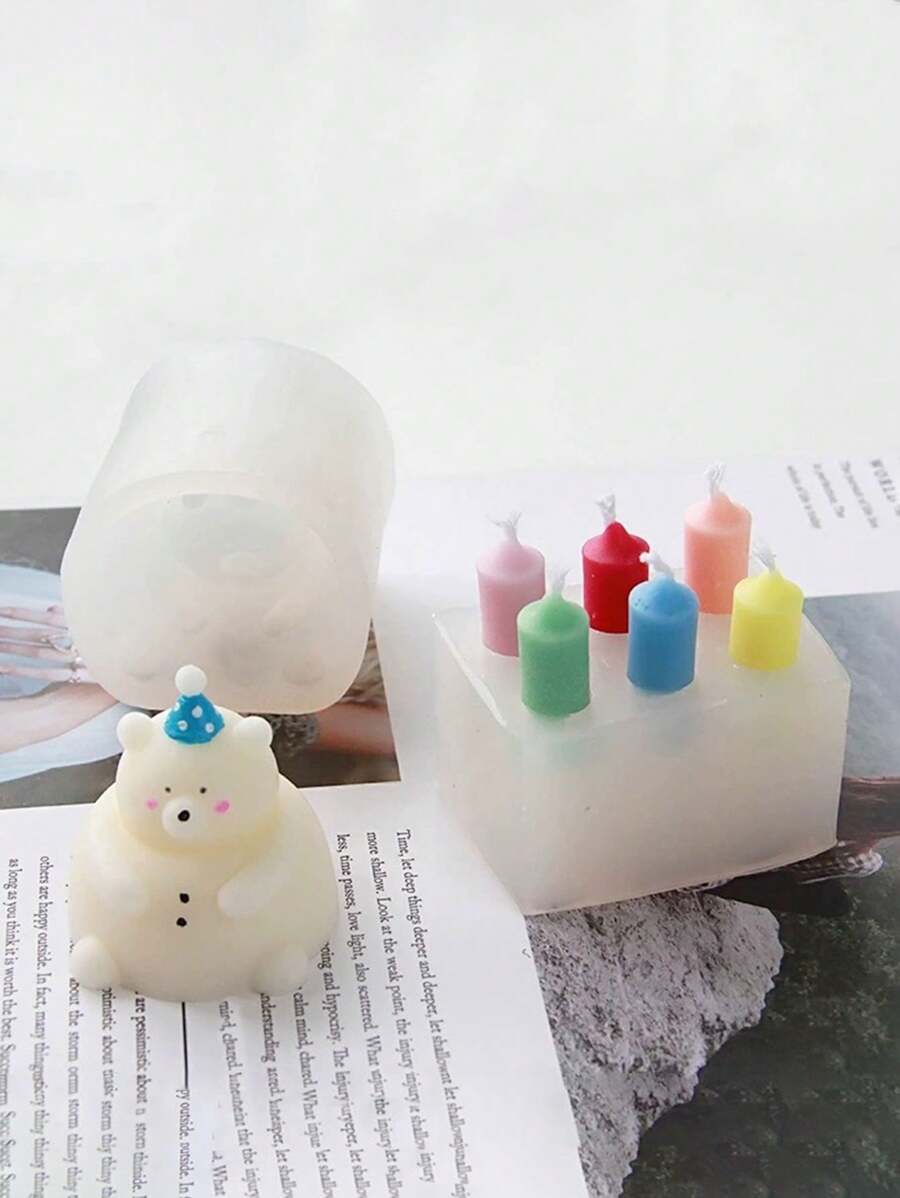 1pc Bear Silicone Mold, 1pc Equals Style A+Style B. Handmade Candle DIY Molds, Candle Making Molds, Candle Decoration Accessories Molds. Note: Sell Molds.