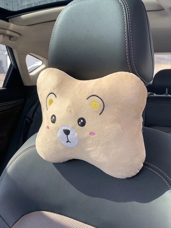 1pc Beige Car Pillow, Car Neck Pillow, Car Seat Headrest, Lumbar Support Cushion, Backrest Cushion, Suitable For All Seasons
