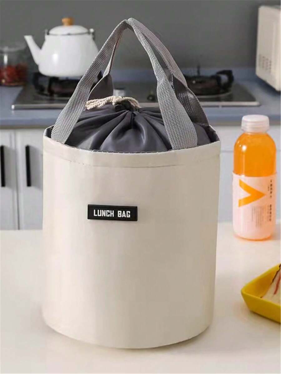 1pc Beige Cylindrical Oxford Cloth Lunch Tote Bag With Insulation Layer, For Outdoor Travel Picnic