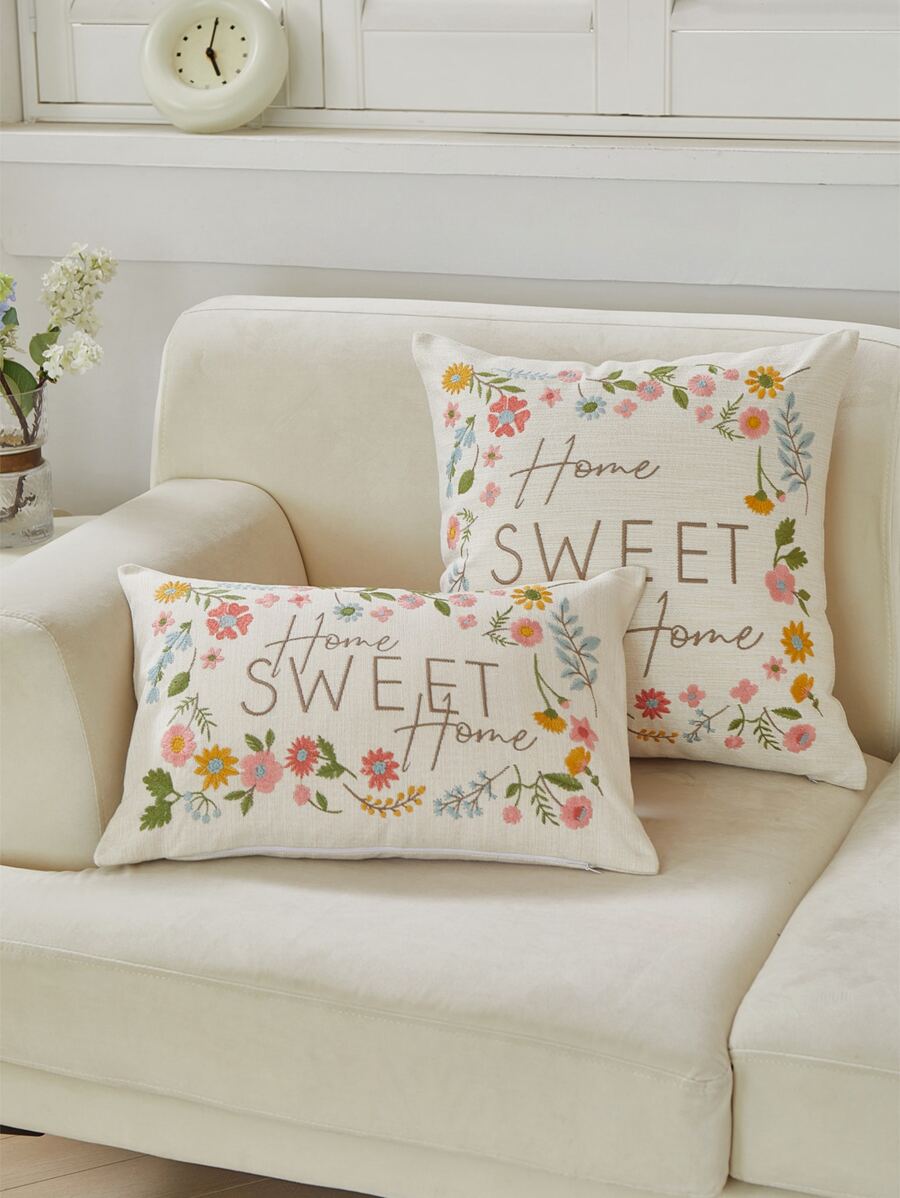 1pc Beige Imitation Linen Flower Embroidery Pillowcase Perfect For Any Seasons Decoration